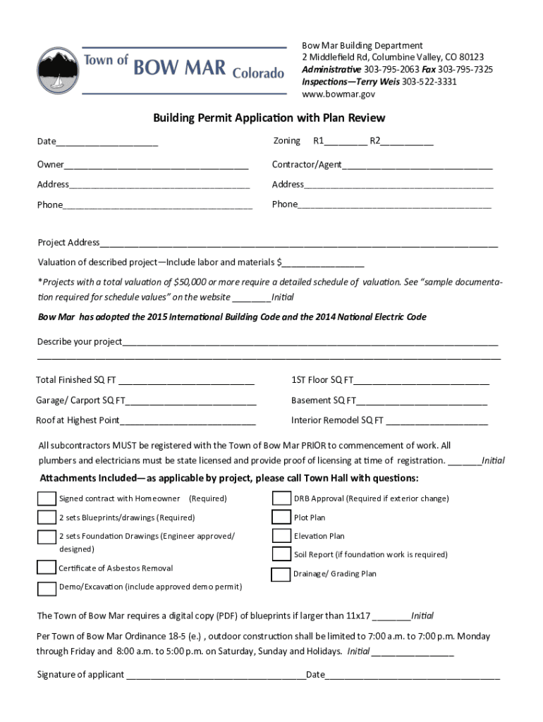 Get the free Building Permit Application with Plan Review - Colorado.gov