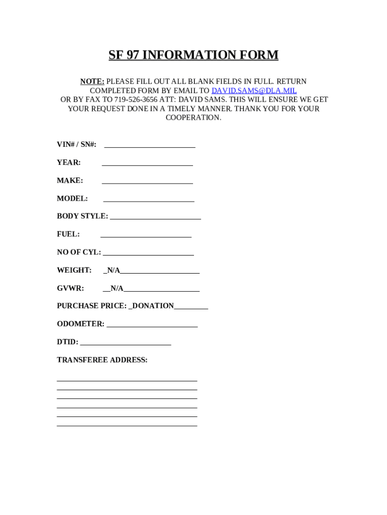 How to fill SF 97 INATION - Colorado word template