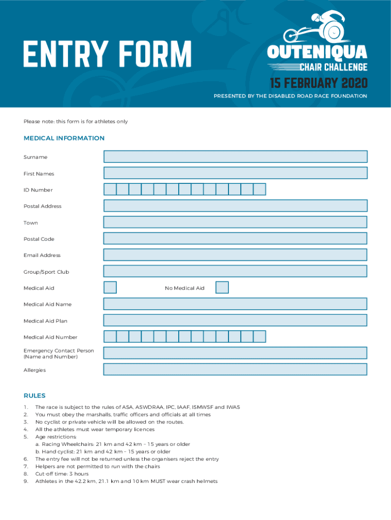 PRESENTED BY THE DISABLED ROAD RACE FOUNDATIONPlease note: this form is for athletes nonmedical INFORMATION