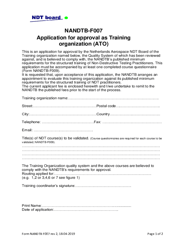 Get the free APPLICATION FOR AN APPROVED TRAINING ORGANIZATION CERTIFICATE