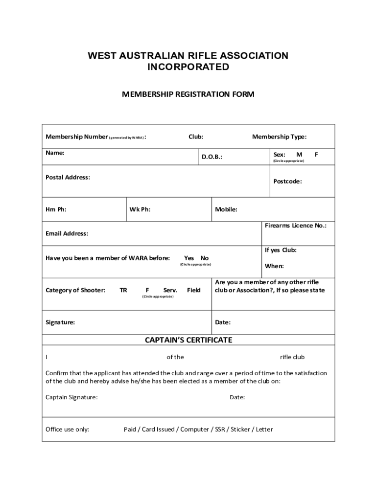MEMBERSHIP REGISTRATION FORMMembership Number (generated by WAR) :Club:Name:Membership Type: