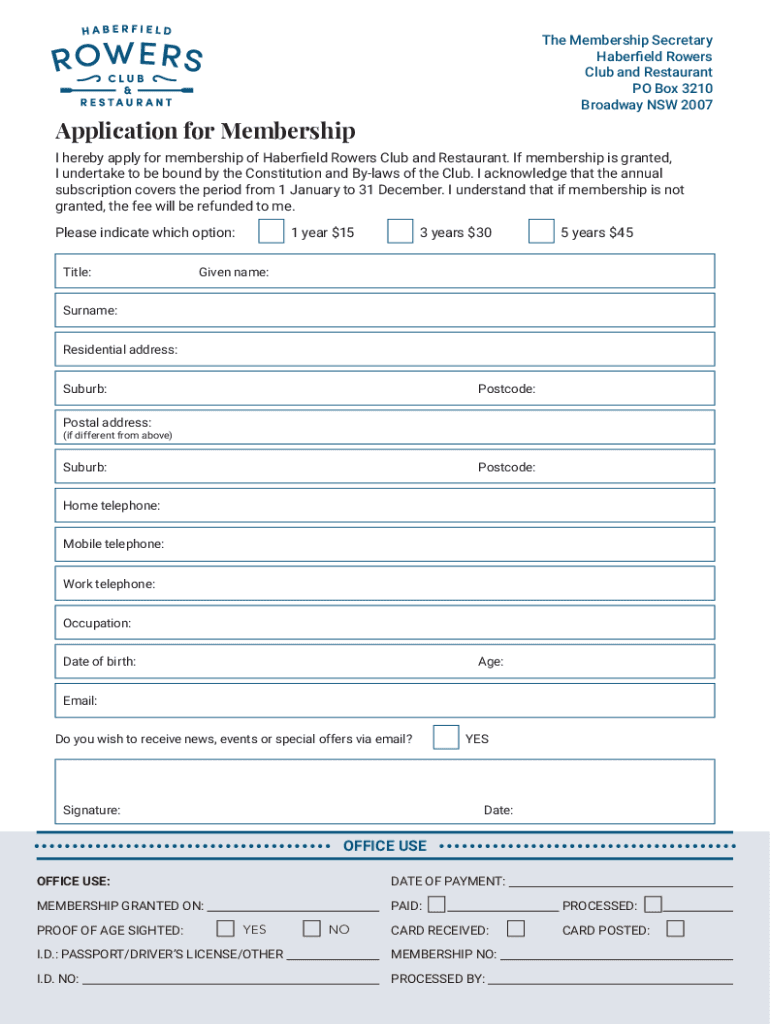 Broadway NSW 2007Application for Membership