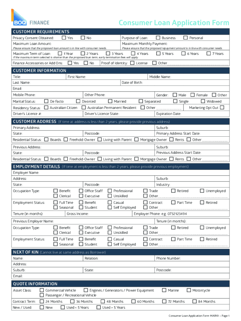 Typically, the application requires personal identification details, income information, employment status, credit history, and other financial obligations.