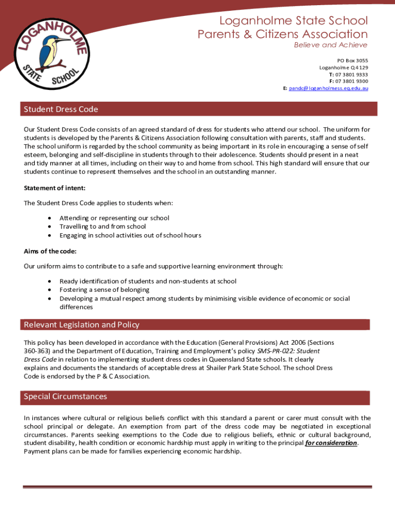 Loganville State School Parents & Citizens Association Believe and Achieve PO Box 3055 Loganville Q 4129 T: 07 3801 9333 F: 07 3801 9300 E: panic loganholmess.EQ.edu.student Dress Code Our Student