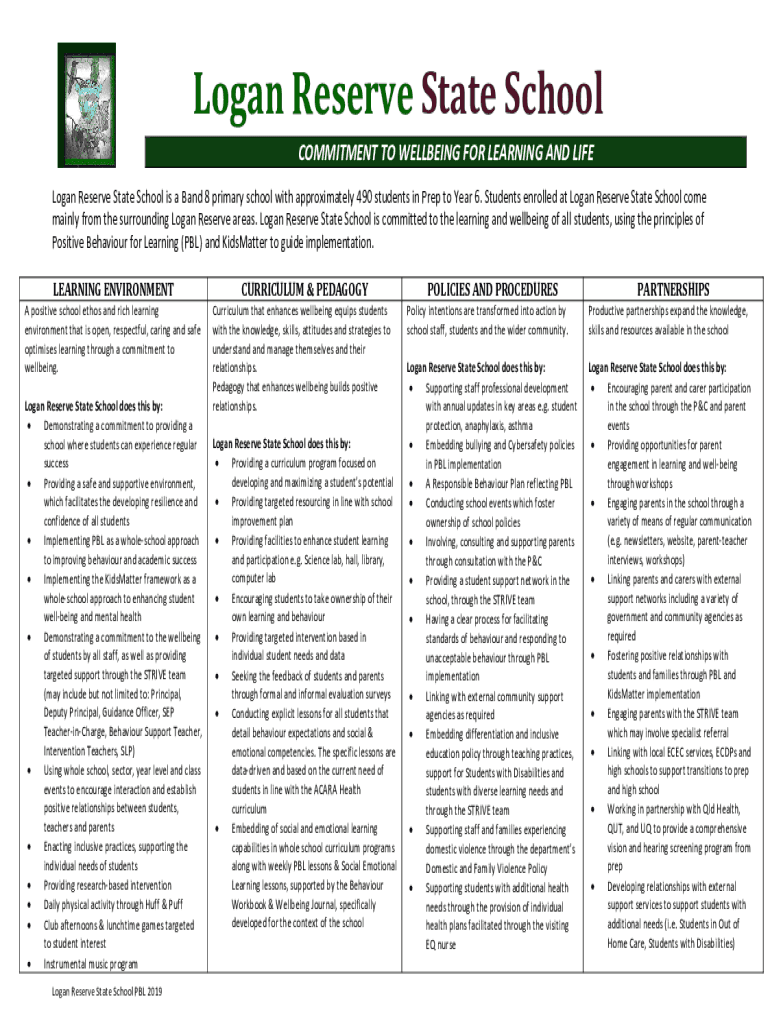 Logan Reserve State Schoolgood is not the form you're looking for?Search for another form here.