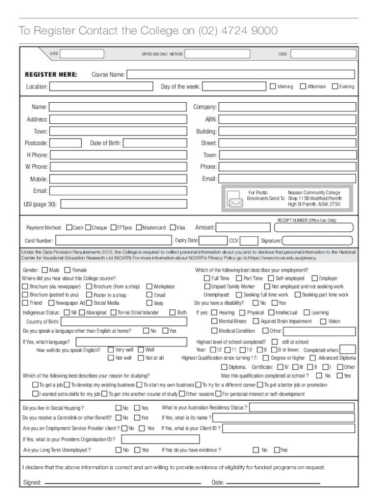 INTEROFFICE USE ONLY: METHODREGISTER HERE:Concourse Name:Location:Day of the week:MorningName:Company:Address:ABN:Town:Building:Postcode:Date of Birth:AfternoonEveningStreet:H