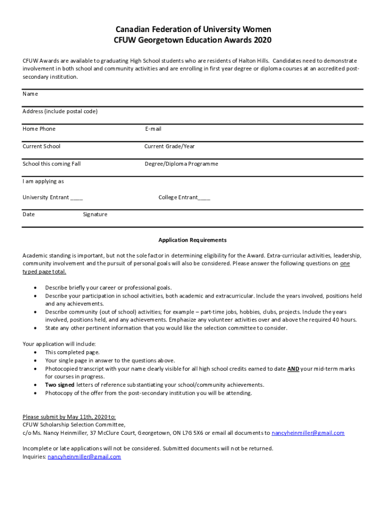 CFU Awards are available to graduating from High School students who are residents of Halton Hills. Candidates need to