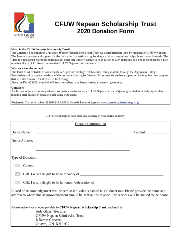 The Canadian Federation of University Women Repeat Scholarship Trust was established in 1996 by members of