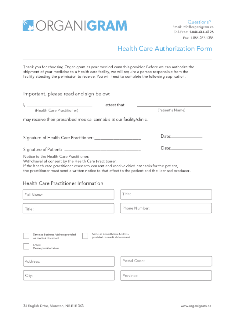 Thank you for choosing Organigram as your medical cannabis provider. Before we can authorize