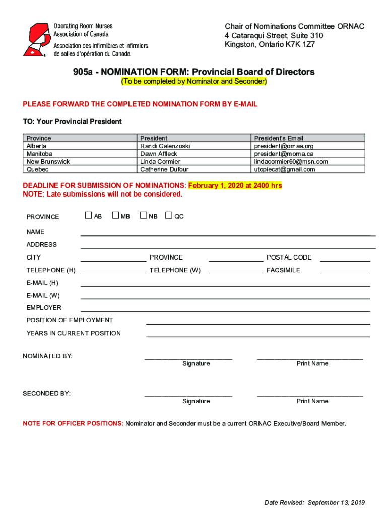 Get the free NOMINATION FORM: Provincial Board of Directors - ORNAC