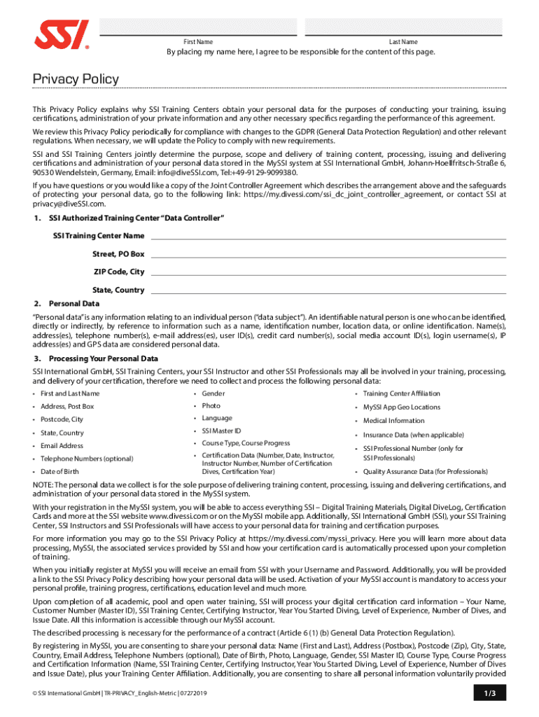 This Privacy Policy explains why SSI Training Centers obtain your personal data for