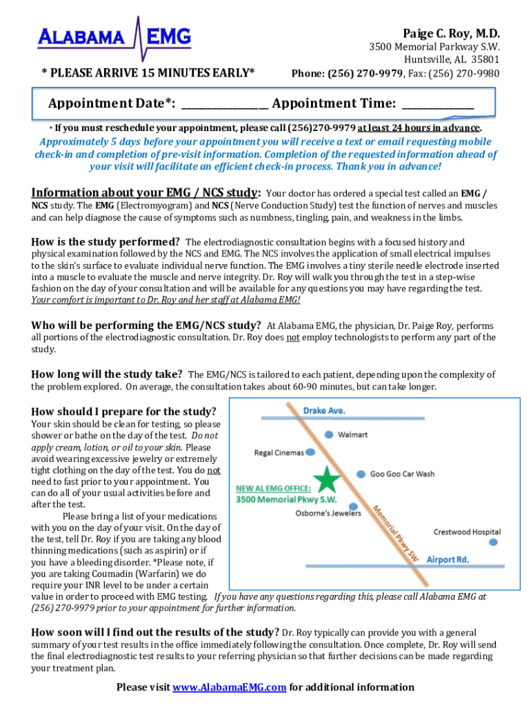 Paige C. Roy, M.D. * PLEASE ARRIVE 15 MINUTES EARLY×3500 Memorial Parkway S.W. Huntsville, AL 35801 Phone: (256) 2709979, Fax: (256) 2709980Appointment Date*: Appointment Time: * If you must reschedule