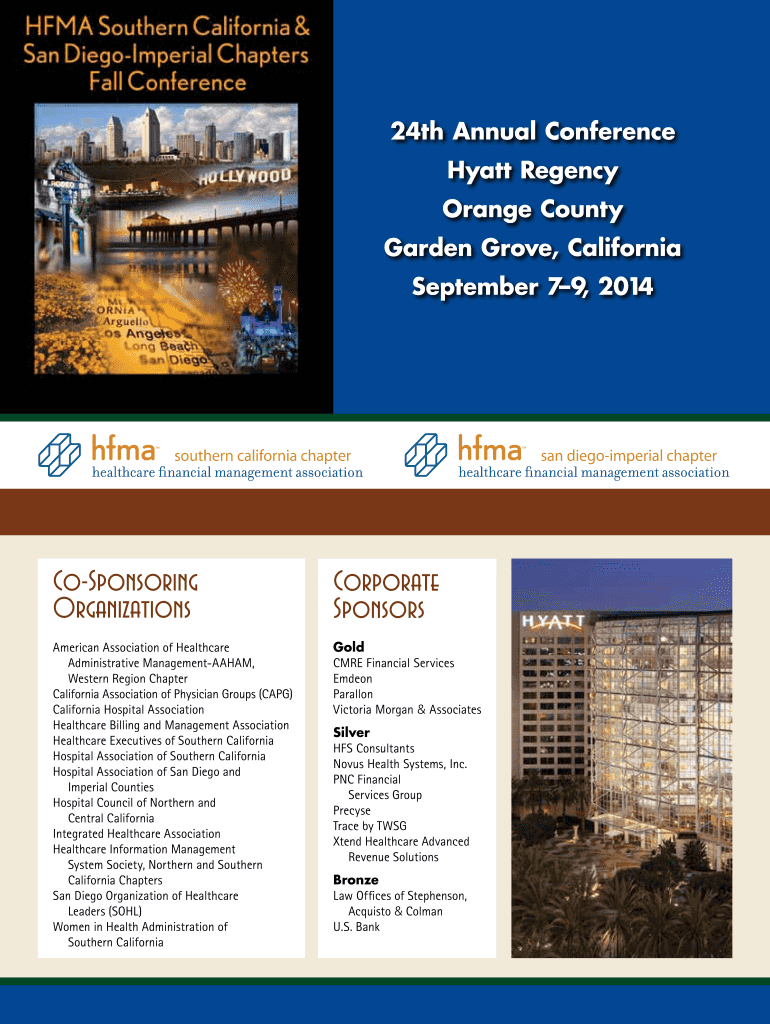 24th Annual Conference Hyatt Regency Orange County Garden Grove, California September 7 9 2014, southern California chapter Co-Sponsoring Organizations Corporate Sponsors American Association of Healthcare