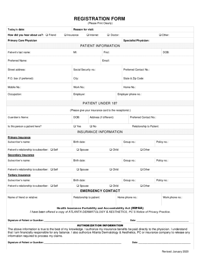 REGISTRATION FORM (Please Print Clearly) Today's date:Reason for visit:How did you hear about us?: Friend Insurance Internet Doctor:Primary Care Physician Other: Specialist Physician:PATIENT INFORMATION