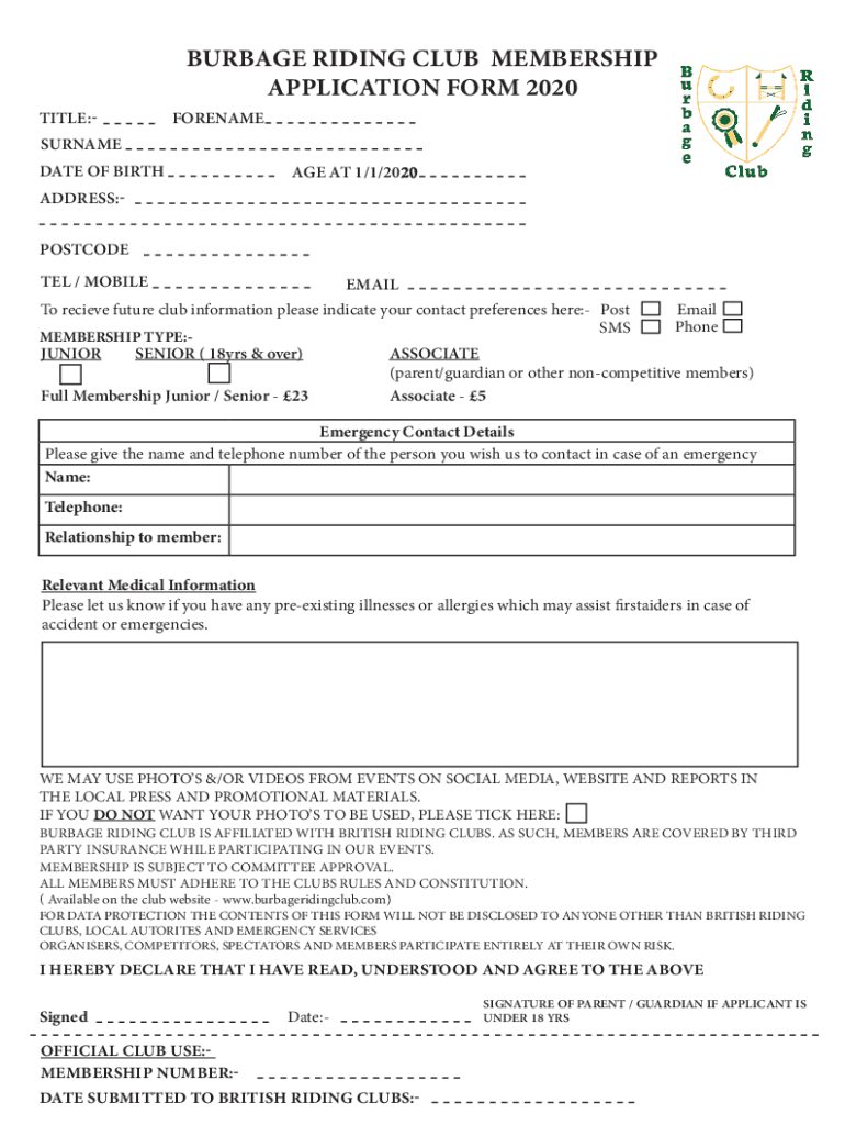 How to fill out burbage riding club membership