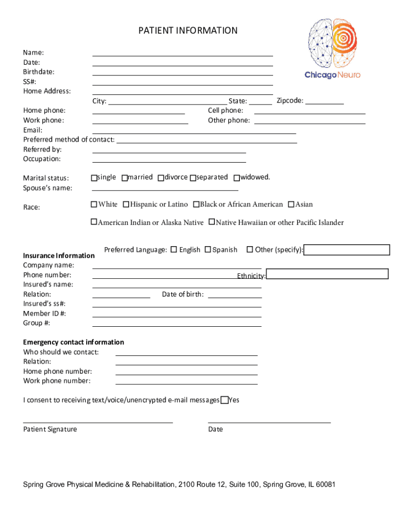 Get the free PATIENT INFORMATION - Chicago Neuro