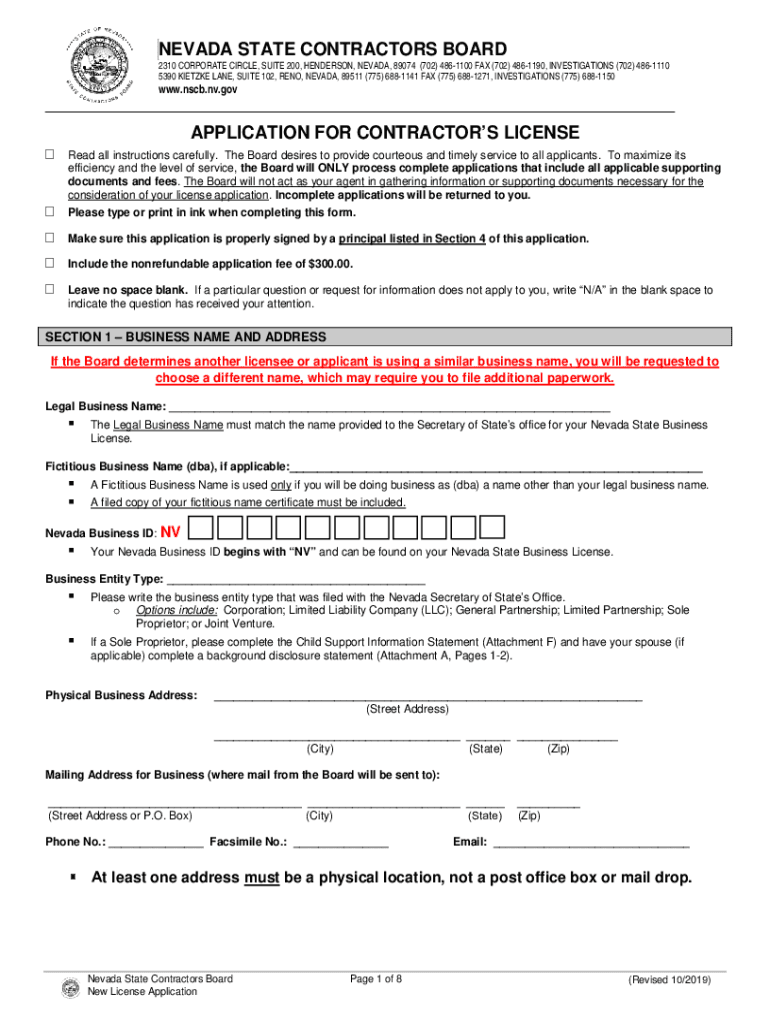 To fill out the Nevada State Contractors Board application, follow these steps:
