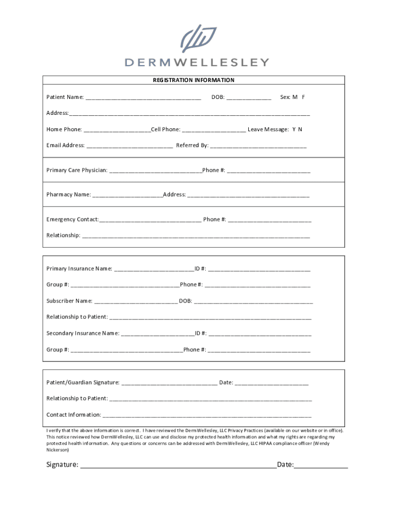 Once satisfied with the accuracy of the patient information, sign and date the form.