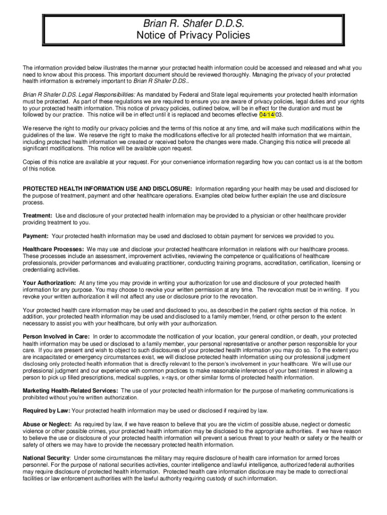 Get the free Notice of Privacy Practices for Protected Health InformationHow To Comply with the P...