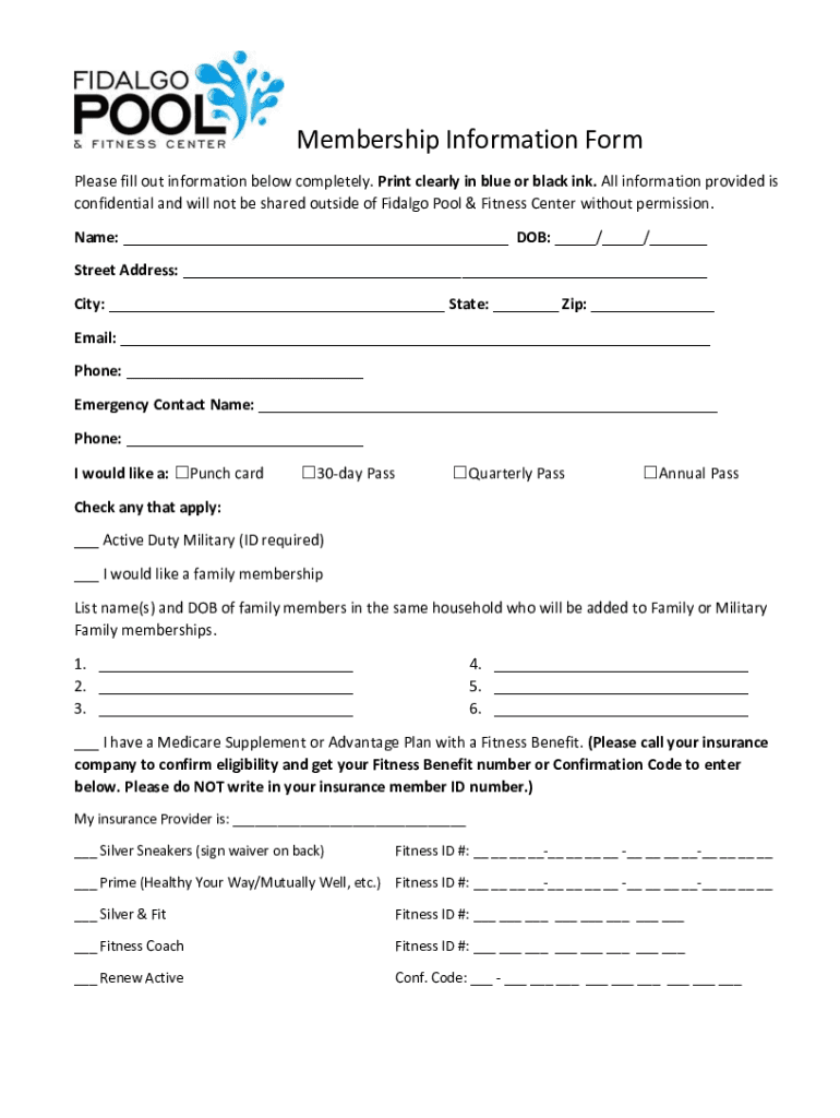 Membership Information Form Please fill out information below completely. Print clearly in blue or black ink. All information provided is confidential and will not be shared outside of Hidalgo Pool