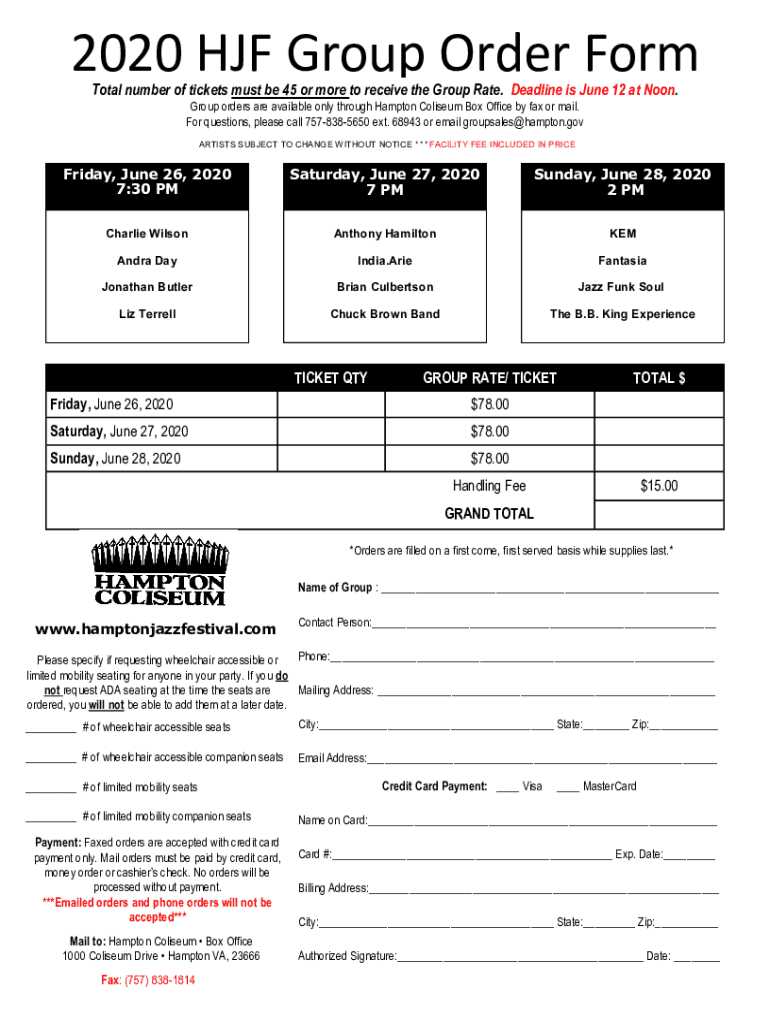 Get the free 2020 HJF Group Order Form - Hampton Coliseum