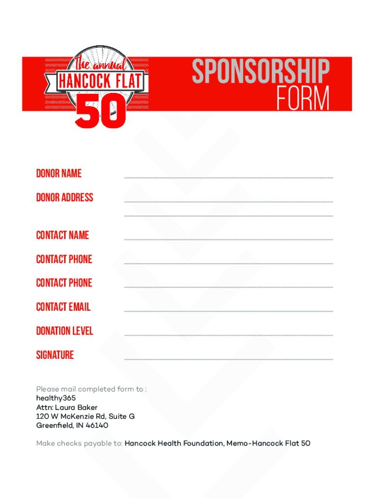 SPONSORSHIP form Donor name donor address contact name contact phone Contact email donation level signature Please mail completed form to :healthy365 Attn: Laura Baker 120 W McKenzie Rd, Suite G Greenfield,