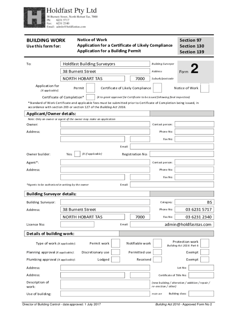 Application for a Building PermitBUILDING WORK