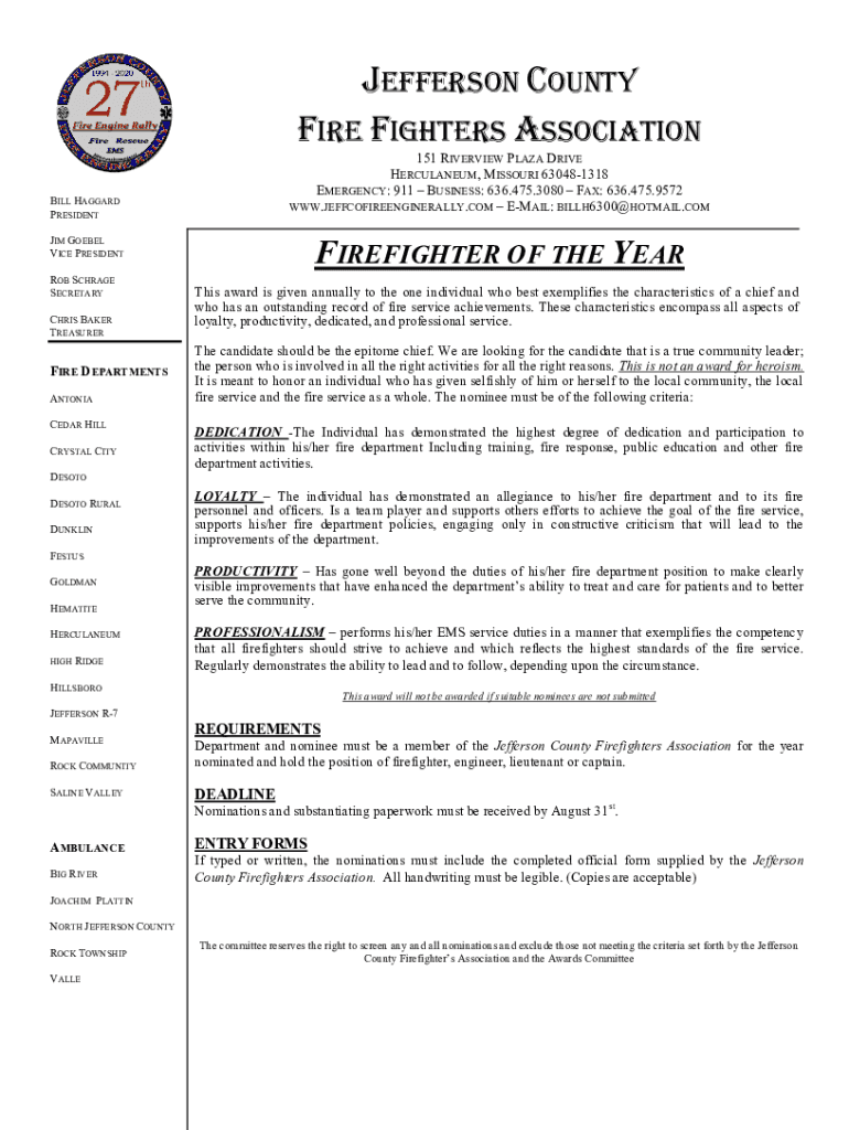 Get the free Firefighter of the Year - Jeffco Fire Engine Rally