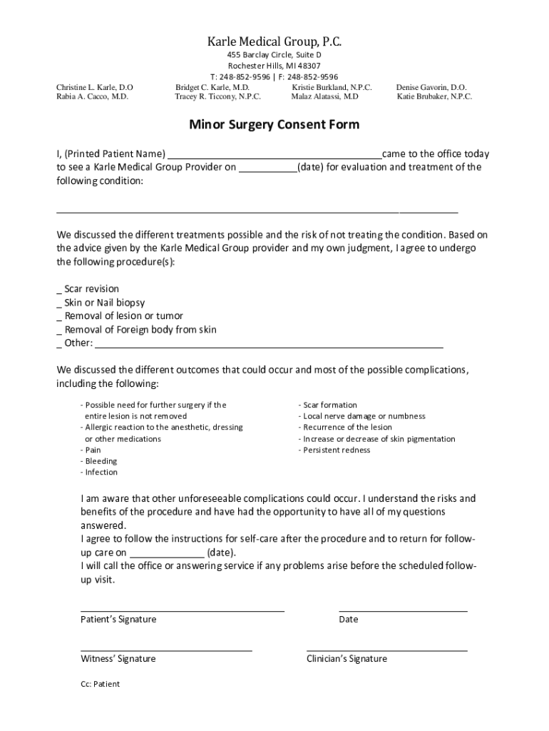 Get the free Skin Surgery Consent Form