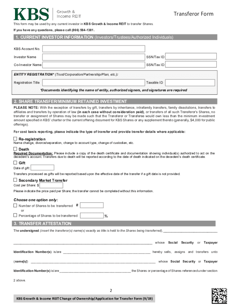 Instructions for Change of Ownership/ Application for Transfer This form may be used to transfer shares of common stock (Shares) of KBS Growth & Income REIT (KBS G&I). Please read the following important