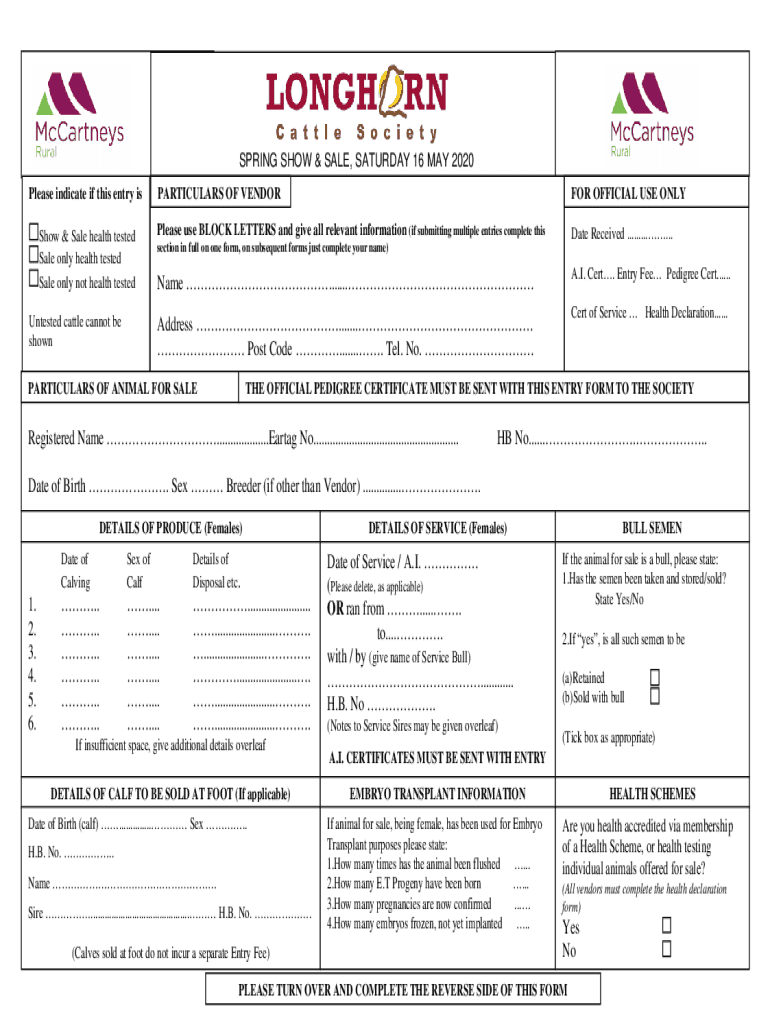 Closing Date for entries Please indicate if this entry is Show & Sale health tested Sale only health tested Sale only not health tested Untested cattle cannot be sponsoring SHOW & SALE, SATURDAY 16