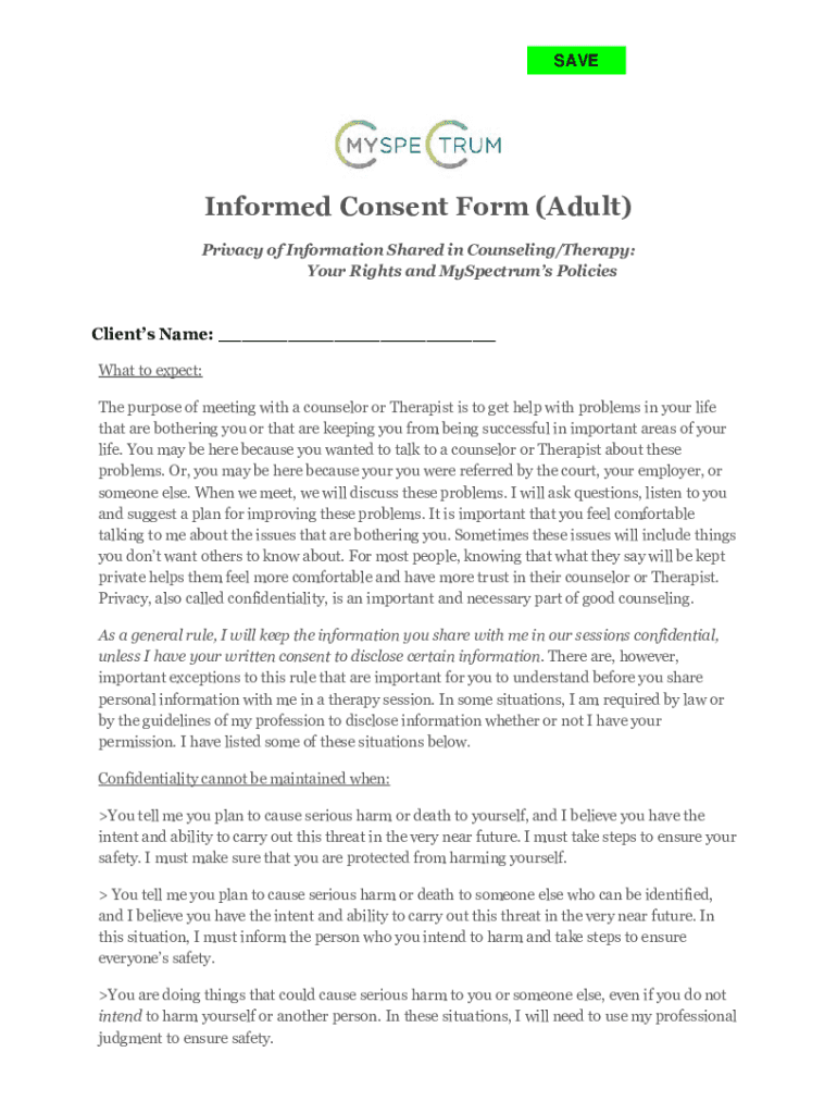 Myspectrum adult informed consent is required for any adult individual who is engaging in a medical procedure, research study, or any healthcare-related activity where their informed consent is necessary.