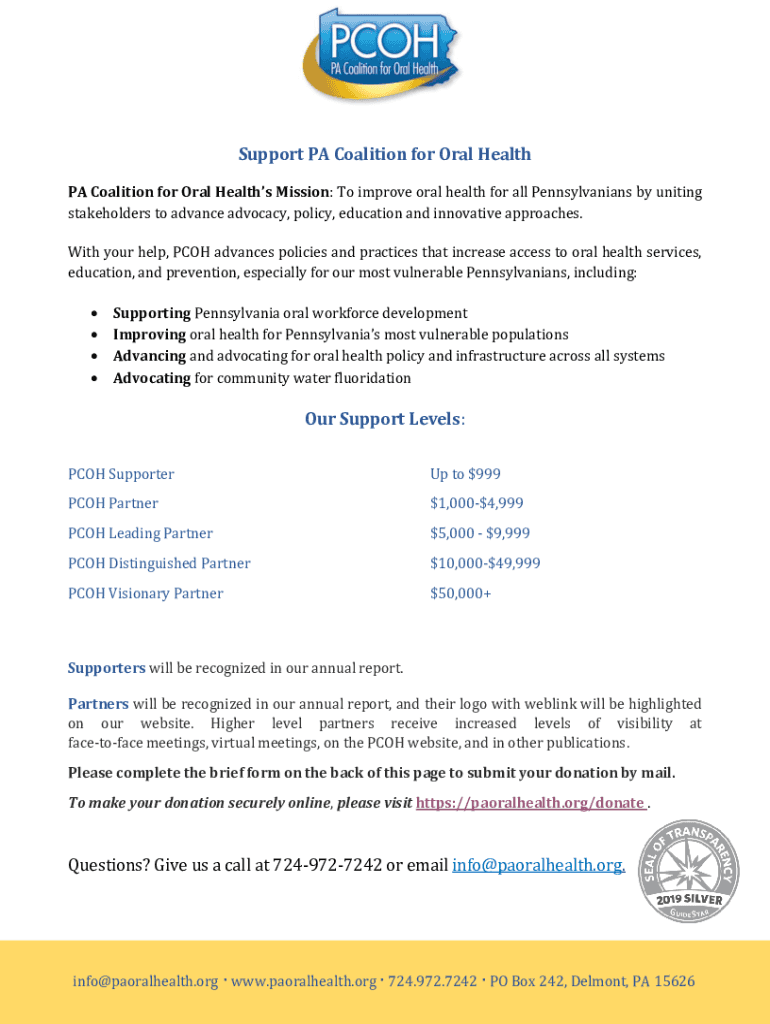 Get the free Who We ArePA Coalition for Oral Health