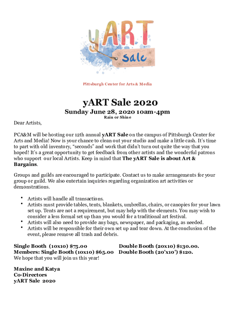 ! Pittsburgh Center for Arts & Mediator Sale 2020 Sunday, June 28, 2020 10am4pm Rain or Shine Dear Artists, CALM will be hosting our 12th annual part Sale on the campus of Pittsburgh Center for Arts