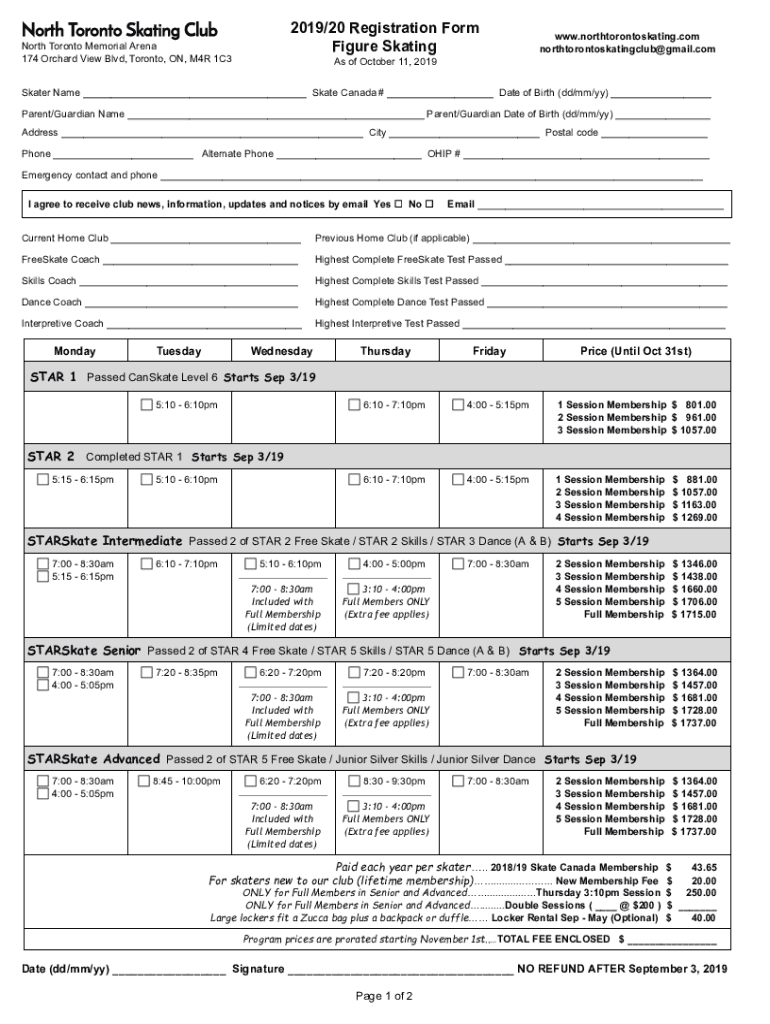 Get the free Register by Paper Form :: North Toronto Skating Club ...