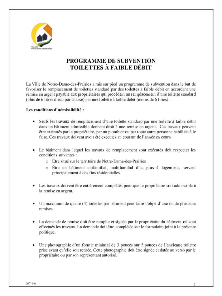 Program DE SUBVENTION TOILETTE FABLE BIT La Villa de NotreDamedesPrairies a MIS SUR pie don't program DE subvention days LE but DE favorite LE replacement DE toilette standard par DES toilette fable