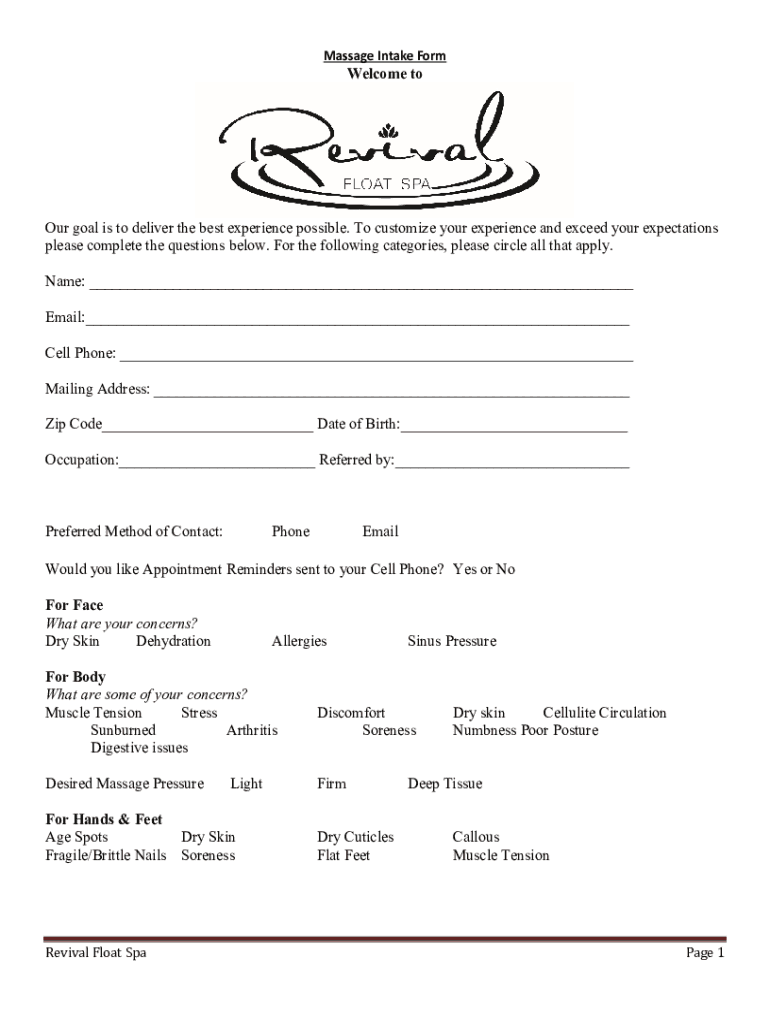 How to fill out 59 best massage intake?