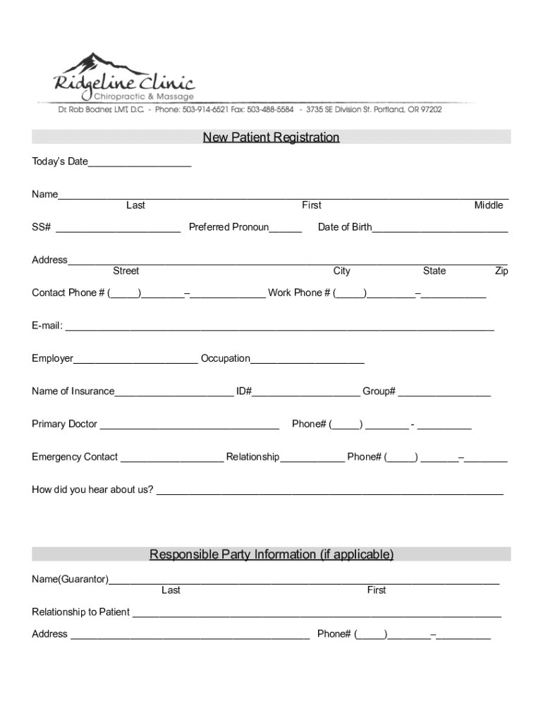 A new patient registration form is a document that collects essential information about a new patient to establish their medical record and facilitate their care within a healthcare system.