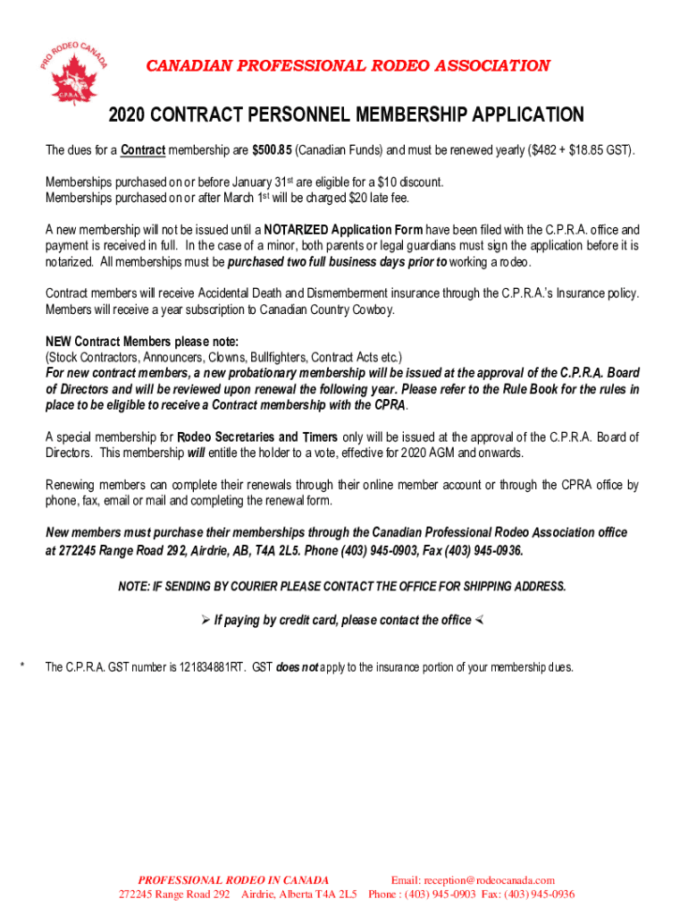 CANADIAN PROFESSIONAL RODEO ASSOCIATION2020 CONTRACT PERSONNEL MEMBERSHIP APPLICATION