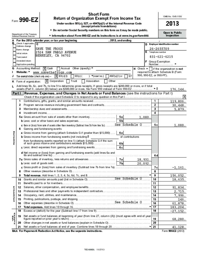 Return of Organization Exempt From Income Tax OMB No. 154511502013Under section 501(c), 527, or 4947(a)(1) of the Internal Revenue Code