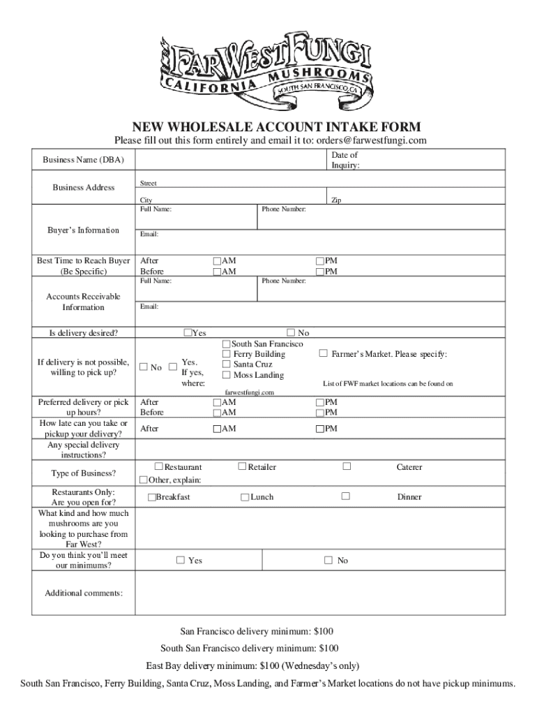 NEW WHOLESALE ACCOUNT INTAKE FORM