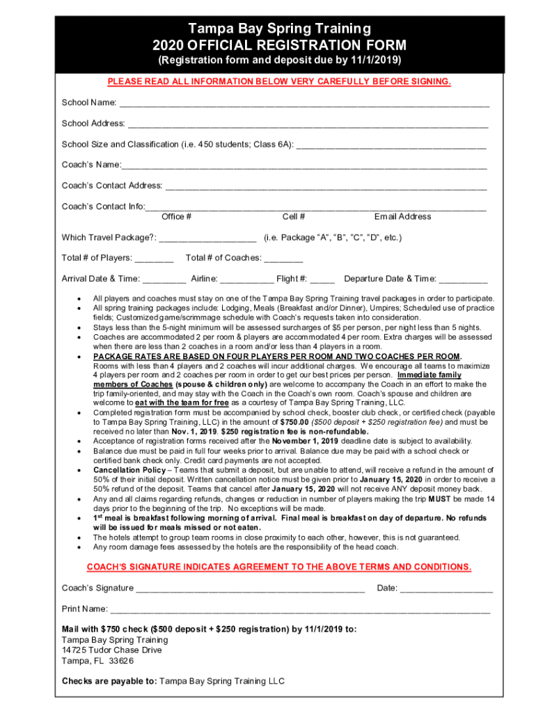 Get the free Tampa Bay Spring Training 2021 OFFICIAL REGISTRATION FORM