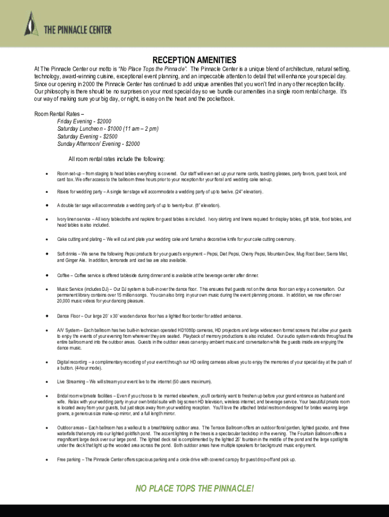 At The Pinnacle Center our motto is No Place Tops the Pinnacle. The Pinnacle Center is a unique blend of architecture, natural setting,