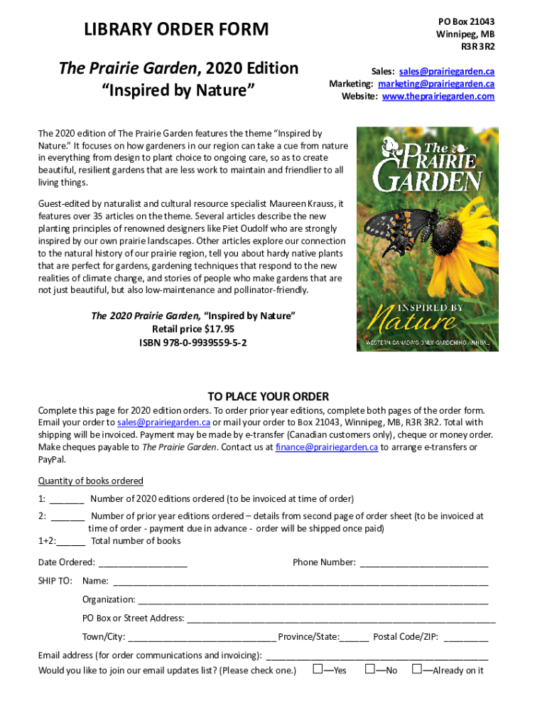 Inspired by Nature Sales: sales@prairiegarden.ca