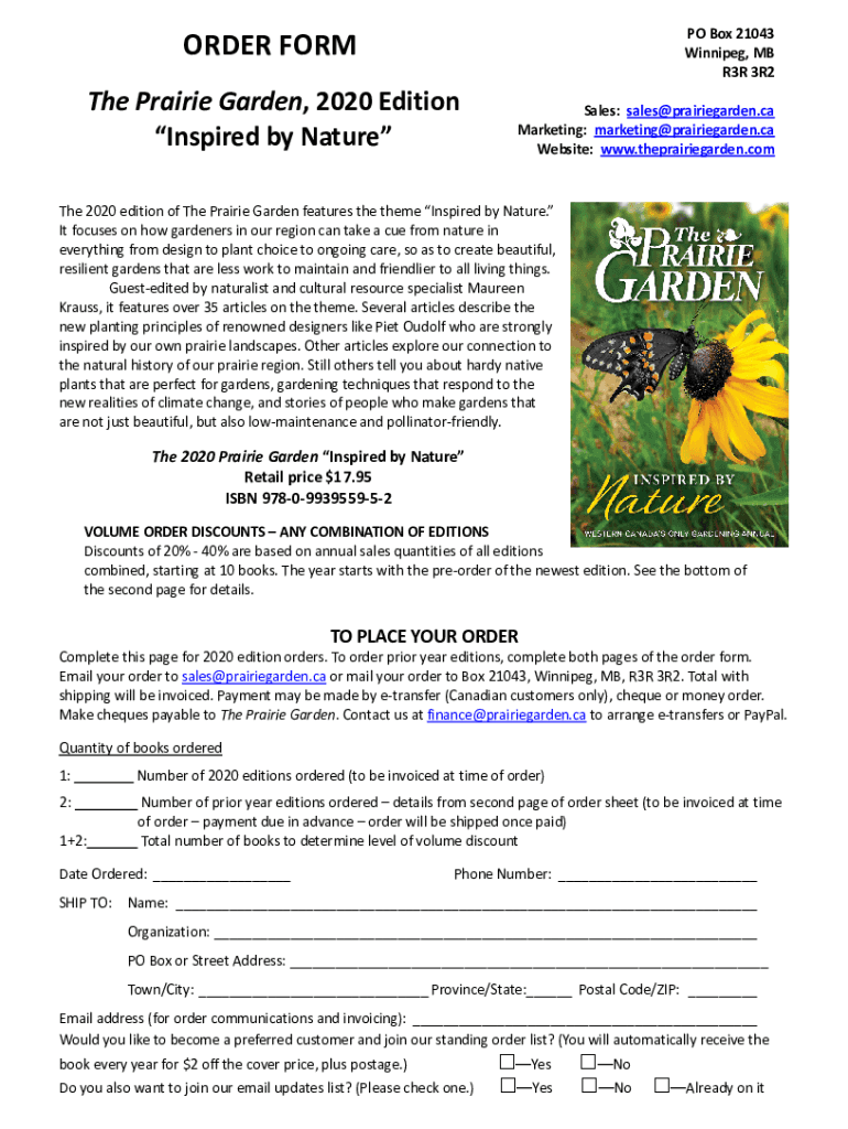 Inspired by Nature Sales: sales@prairiegarden.ca