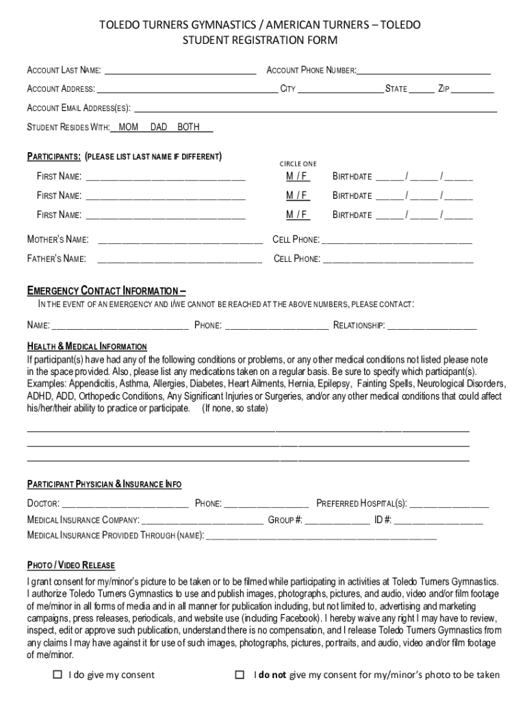 How to fill out toledo turners gymnastics american
