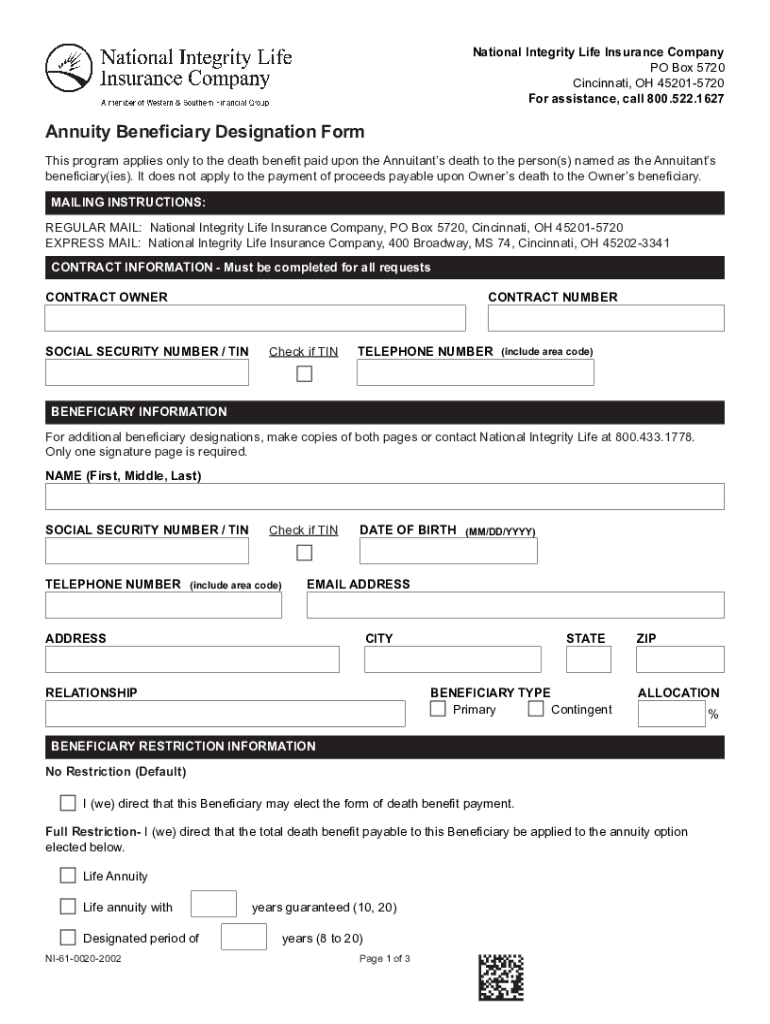 To fill out NI annuitant beneficiary designation, follow these steps: