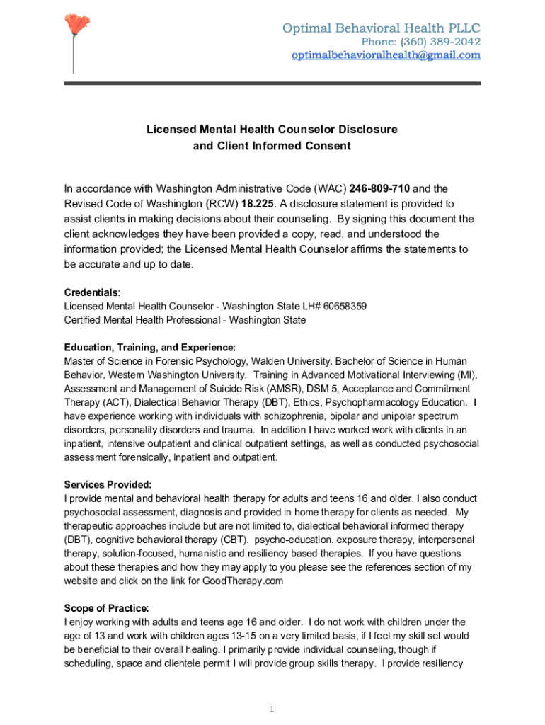 Licensed Mental Health Counselor Disclosure