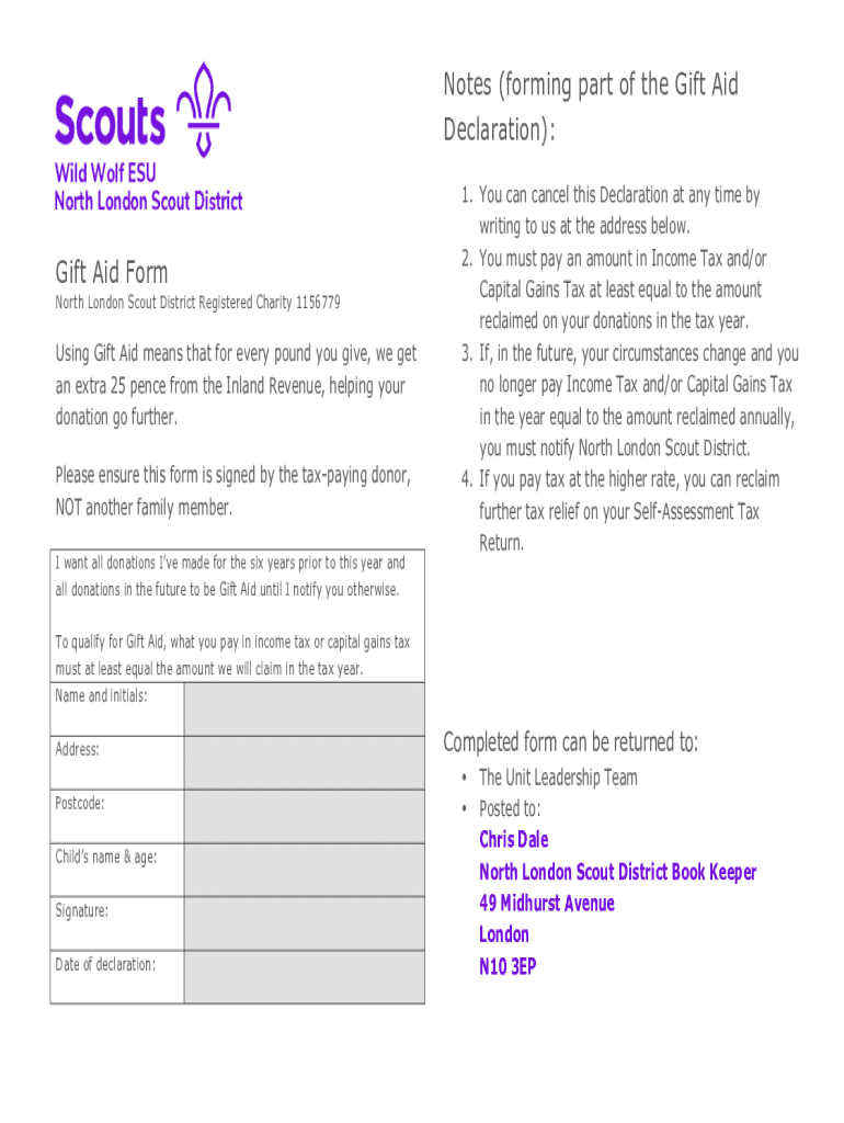 North London Scout District Registered Charity 1156779Using Gift Aid means that for every pound you give, we get