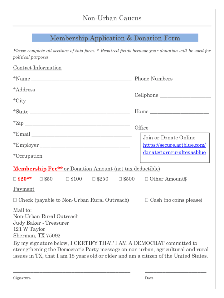 NonUrban Caucus Membership Application & Donation Form Please complete all sections of this form. * Required fields because your donation will be used for political purposesContact Information *Name